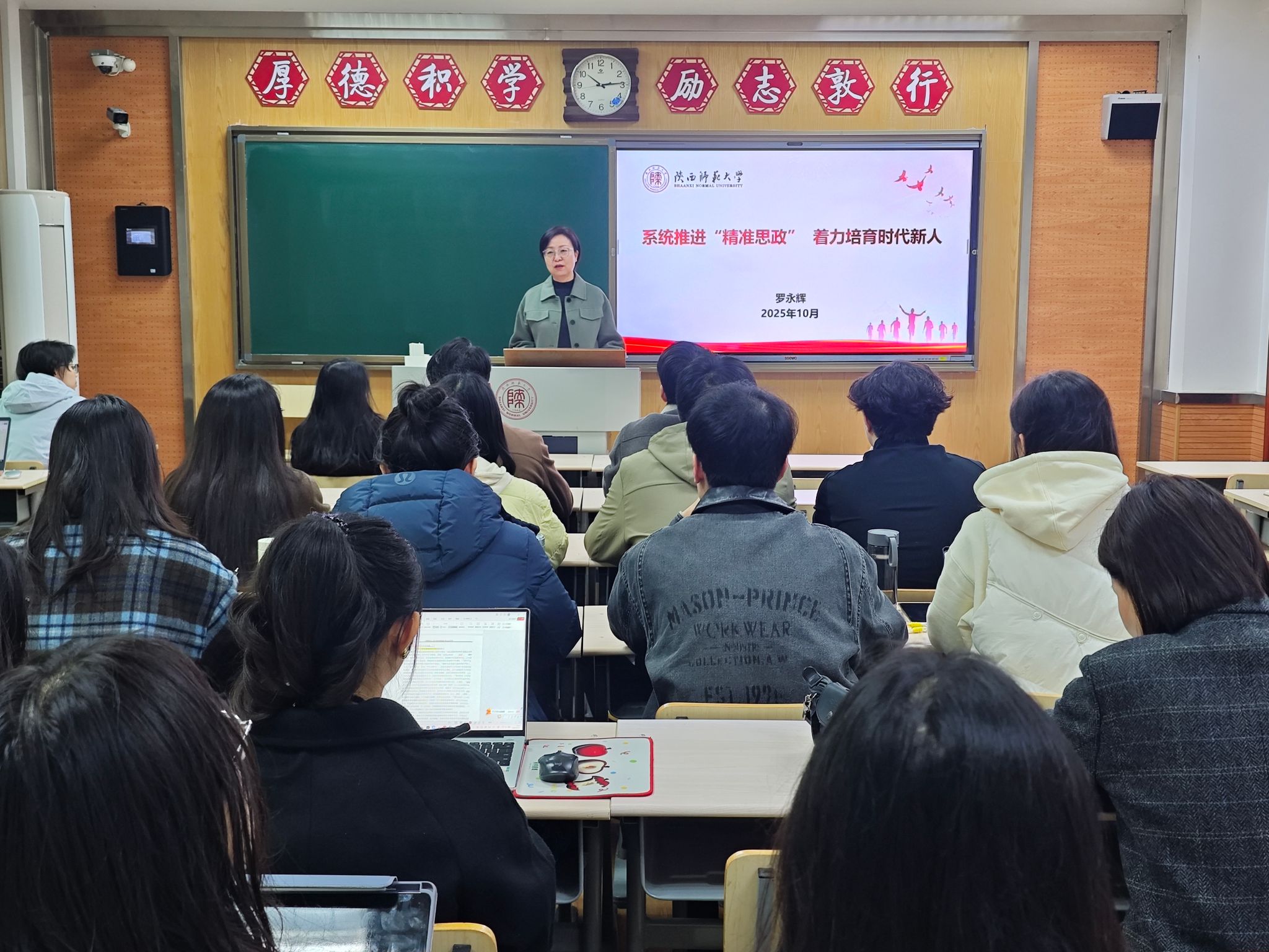 授课中,罗永辉研究员紧扣“精准思政”,系统梳理其理论背景、学理根基与内涵特征,直陈高校思政教育供给滞后、效度难评等新挑战,点明AI技术在用户画像、需求捕捉上的破局机遇。结合习近平总书记关于精准思维和思想政治教育针对性的重要论述,阐释其以生为本、数据赋能的内核,并从新质思政工作能力切入,探索提升精准思政信度、范式、效度的实践路径。整场授课坚持理论与实践互促共进,既精准回应“AI时代如何推进思政精准化”的现实之问,又系统提炼出技术赋能思政的方法论指引。